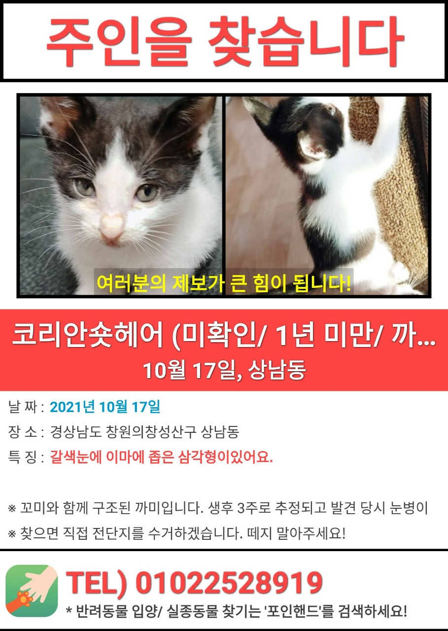 새끼 고양이들이 담겨 있던 상자 아래에는 강아지들이 쓰는 배변패드가 깔려 있었다. 그러면 누군가 의도적으로 고양이를 상자에 담아 아파트 단지 구석에 유기한 것이라고 유추해 볼 수 있다. 물 한 그릇, 고양이 밥 한 그릇 없이 상자에 배변패드만 깔아서 덜렁 나무 뒤에 숨겨놓은 누군가의 사연이 궁금해졌다. 집에서 키우던 고양이가 낳은 새끼들 중 아파 보이는 고양이들을 내놓은 것일까? 아니면 자기도 불쌍하다고 길고양이를 데려왔지만 막상 키울 엄두가 안 나서 상자 속에 담아 내놓은 것일까? 그것도 아니면 키우려고 사 온 새끼 고양이가 눈병에 걸리니 금세 싫증이 나버린 것일까? 생후 3주 정도의 어미젖도 덜 떼고 눈에 진물을 흘리는 아기 고양이들이 상자 속에 담긴 사연이 궁금했으나 고양이들은 말이 없다.