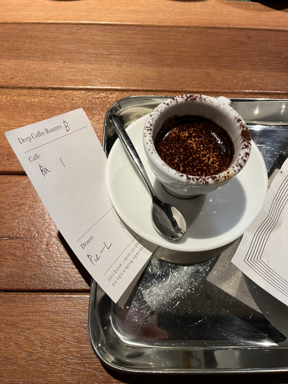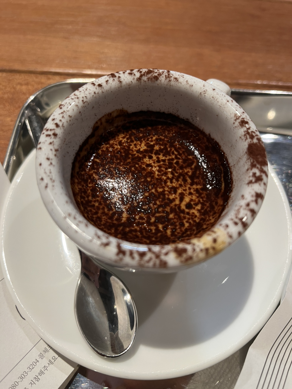 에스프레소에 크림과 카카오 파우더 뿌려서 마시는 커피인데 마치 농축된 카페모카의 풍미를 가지고 있어요. 에스프레소 콘파냐처럼 휘핑크림이 위에 올라갈 줄 알았는데 크림과 에스프레소를 섞고 위에 코코아 파우더를 뿌려주는 비주얼이라 조금 놀랐습니다. 직원에게 물어보니 콘파나에는 좀 더 쫀쫀한 크림이 올라가고 바치오에는 묽은 크림에 들어간다고 해요.
