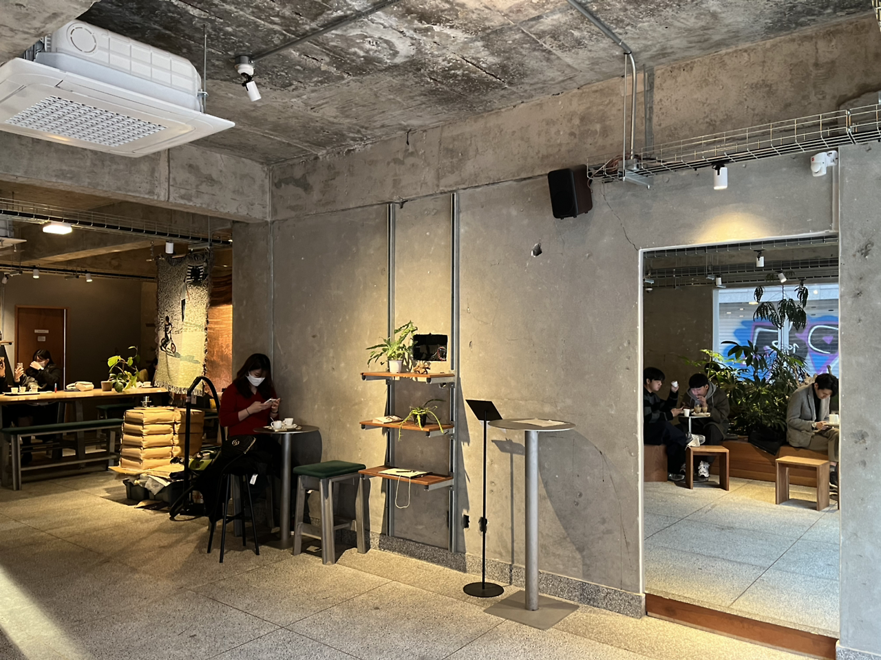 아메리카노 한 잔도 에스프레소에 그저 물을 섞은 것뿐이라죠. 그저 에스프레소를 한 잔 마시는 것과 큰 차이가 없을 겁니다. 그럼에도 에스프레소는 쓰고 맛이 없다는 인식 때문에 인기가 없었어요. 이런 에스프레소 바가 많아지면 질 좋은 에스프레소 음료를 쉽게 먹을 수 있을 것 같습니다. 군더더기 없이 심플한 에스프레소 한잔을 파는 '딥 로스터스 카페'는 내부 인테리어도 군더더기 없이 간결해요. 어둡고 답답해 보일 수 있는 공간이지만 곳곳에 키우는 식물과 통 거울이 신선함과 개방감을 줍니다.