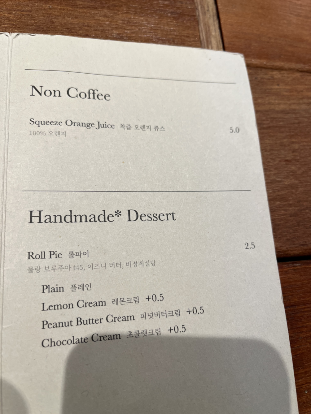 고소한 버터 맛이 강하고 겉은 바삭해요. 플레인을 주문하면 파이만 먹게 되고 속에 채울 크림을 추가 주문해야 합니다. 레몬크림은 산뜻하고 가벼워서 입안에서 금세 사라져 버리고 버터의 고소함에 오래 남았어요. 레몬 크림보다는 레몬 커드를 넣어서 계란 노른자의 고소한 맛을 더하면 좀 더 균형 있지 않을까 하는 생각입니다. 파이 속에 크림을 채우는 방식이 '비어드 파파'라는 브랜드와 유사한 것 같습니다. 주문 즉시 슈크림을 채워주는 식으로 만들었는데 그 롤 파이와 비슷한 식감을 가지고 있습니다.