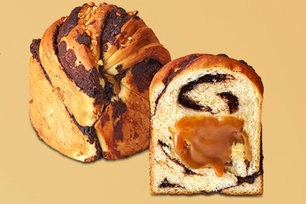 호랑이의 줄무늬를 초콜릿으로 표현했는데 카라멜 필링을 더해 부드럽고 달콤한 빵이예요!