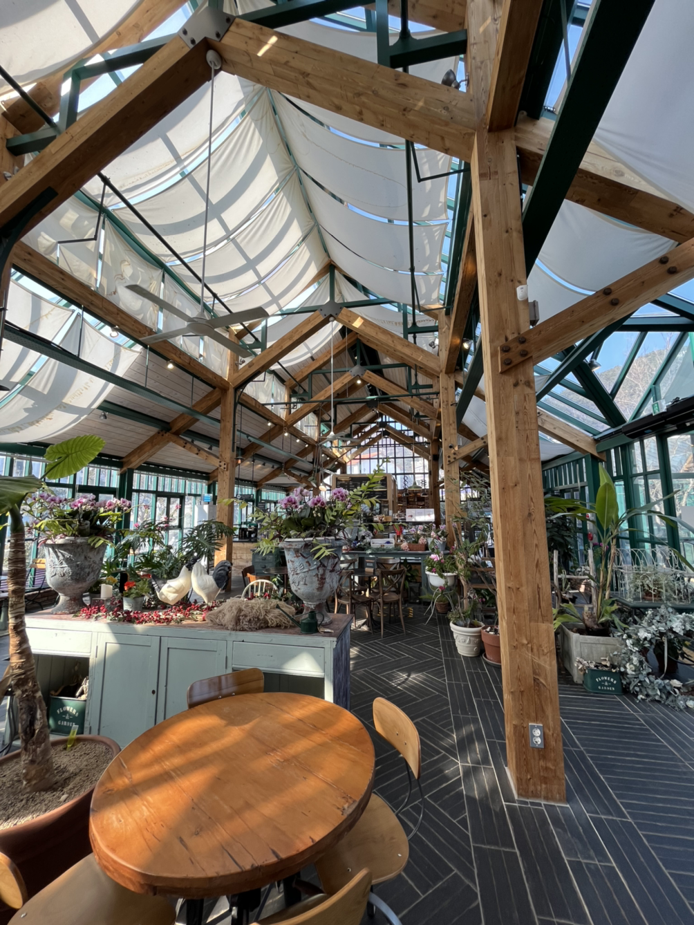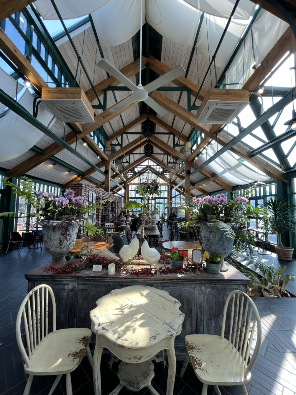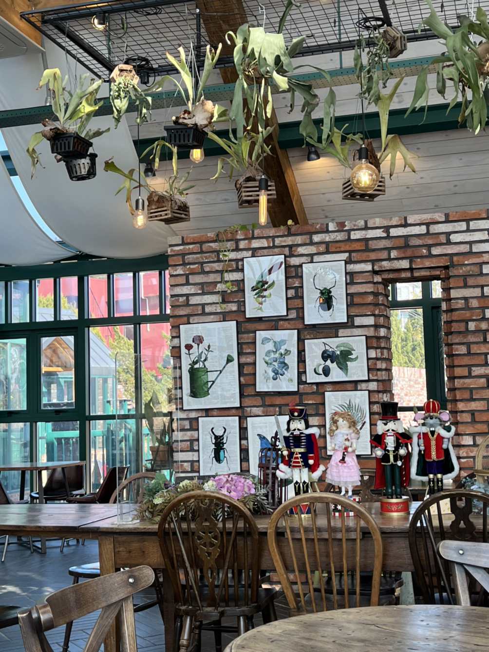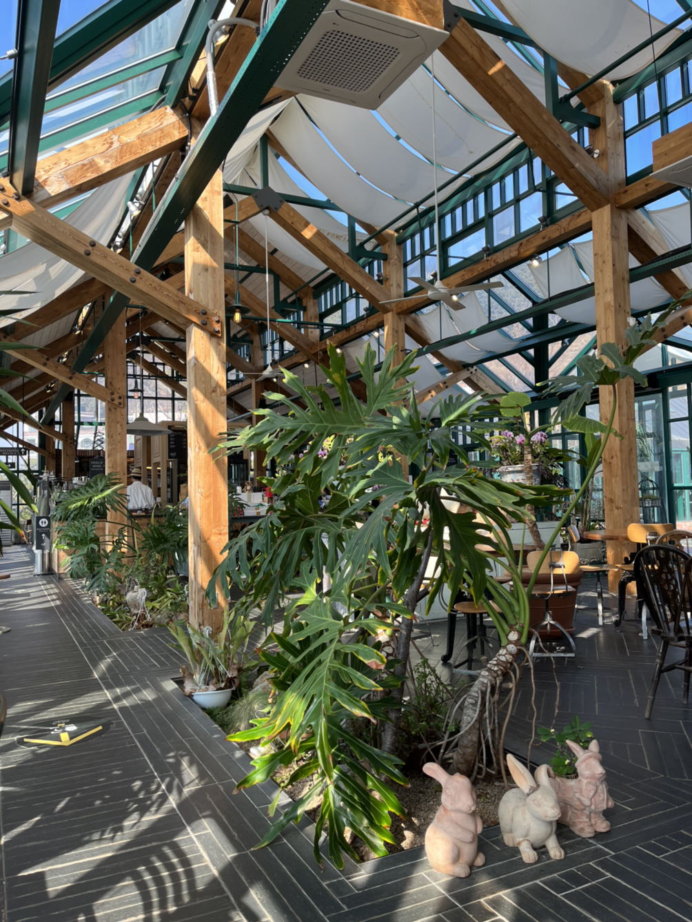 외도 널서리는 나의 취향에 딱 맞는 카페인데 나무 소재로 만들어진 온실에 초록 식물이 가득한 인테리어가 편안하고 따뜻한 공간이다. 삼각형으로 높은 천장에는 하얀 광목천이 햇빛을 가려주고 있고 곳곳에 행잉 플랜트나 화분들이 다채로운 풍경을 만들어 준다. 작은 인테리어 소품들이 아기자기하고 채광이 좋으니 어디서 찍어도 사진이 예쁘게 잘 나온다.