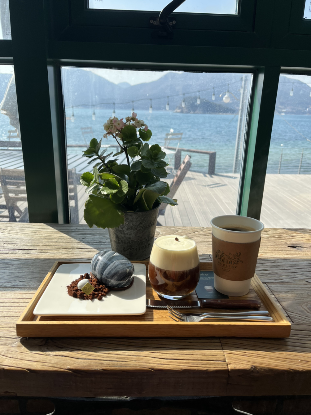 창가에 앉아 바닷물결에 부서지는 햇빛을 감상하고 카페 곳곳에서 사진을 찍으며 나중에 카페를 열면 어떻게 꾸밀지 상상해봤다. 식물을 잔뜩 가져다 놓고 싶다는 말에 엄마는 관리가 힘들 거라며 현실적인 이야기를 하신다. 내 환상을 산산이 깨지게 만드는 게 마음이 상하기도 하지만 다시 카페 내부를 보니 과연 시들시들한 화분이 몇몇 보인다. 이 모든 식물을 건강하게 보살피려면 많은 노력과 애정이 필요할 테지. 카페 공간을 지키고 꾸민다는 것에는 주인장의 세심한 관심이 필요하고 공간을 방문하는 사람들은 그런 세심함에 감동하게 되는 것이다. 오는 사람들이 편안하게 쉴 수 있는 공간을 만들려면 내가 더 부지런히 움직여야 되겠지?