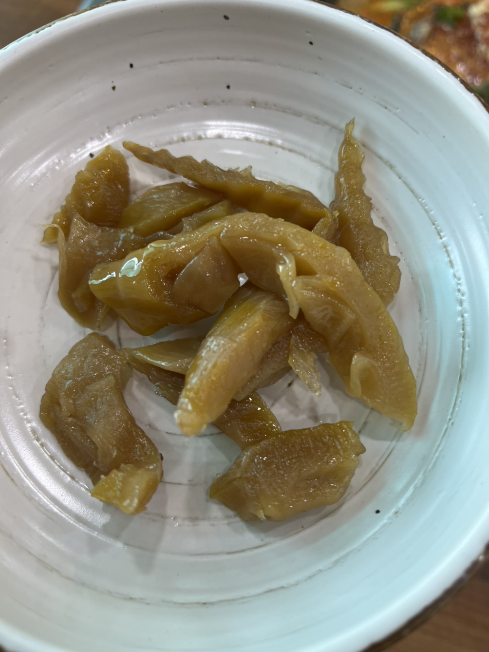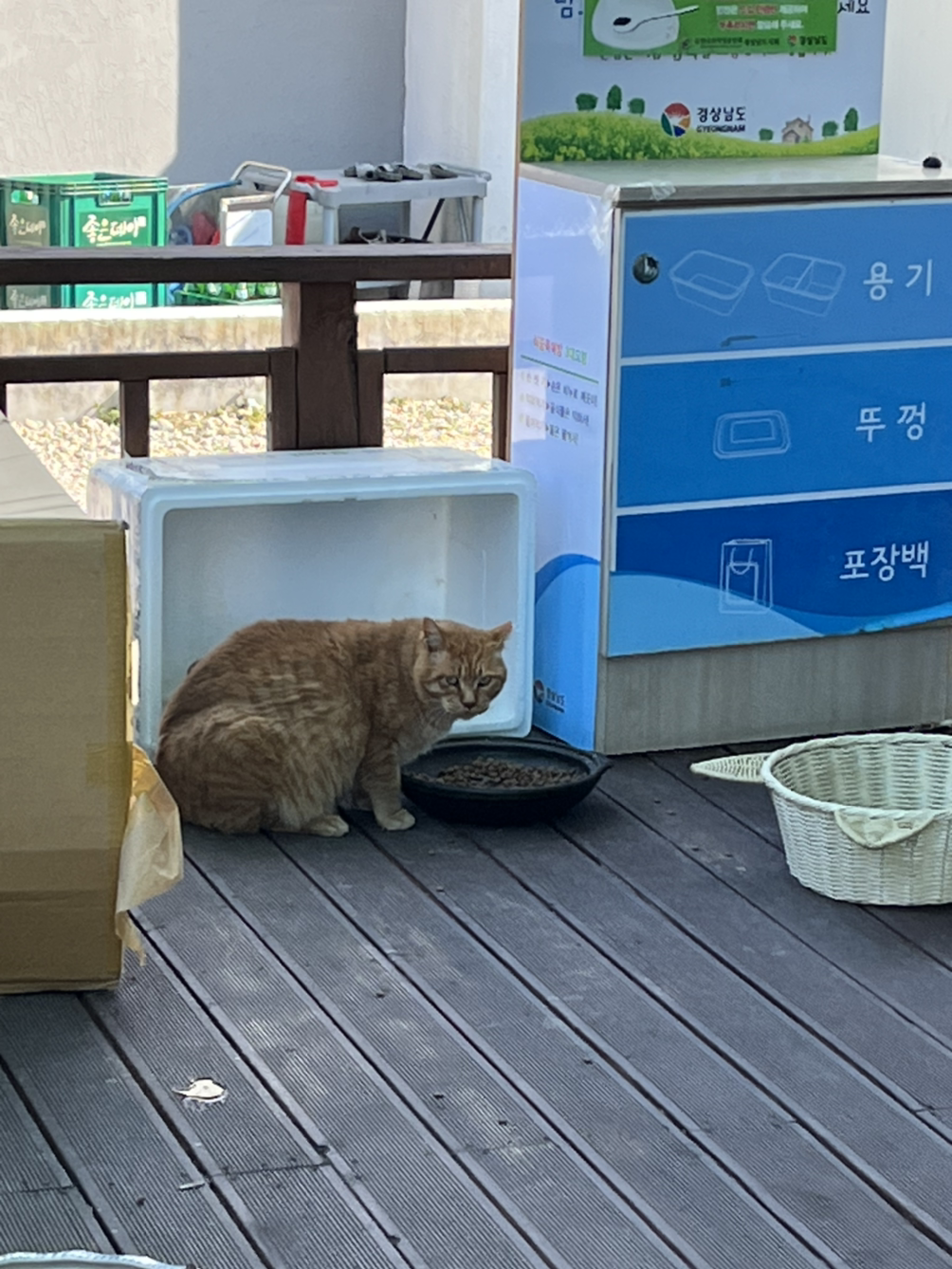 두 공기는 먹겠다며 호기롭게 달려들었지만 한 공기로도 배가 불러 숟가락을 내려놓게 된다. 평소에는 늘 반공기만 먹으며 다이어트를 하는 엄마도 한 공기를 거의 비운 걸 보니 이 집 손맛을 인정하게 된다. 바로 옆에 가게에서 파는 멸치 간장이 보여 한 병 구매하게 되었다. 친절한 사장님은 멸치 간장으로 미역국 끓이는 법이나 톳 무침 만드는 법도 알려 주셨다. 잘 먹었다며 연거푸 인사를 하고 나오는 길에 노란 고양이 한 마리가 문 앞에서 기다리고 있는 걸 보고 깜짝 놀랐다.