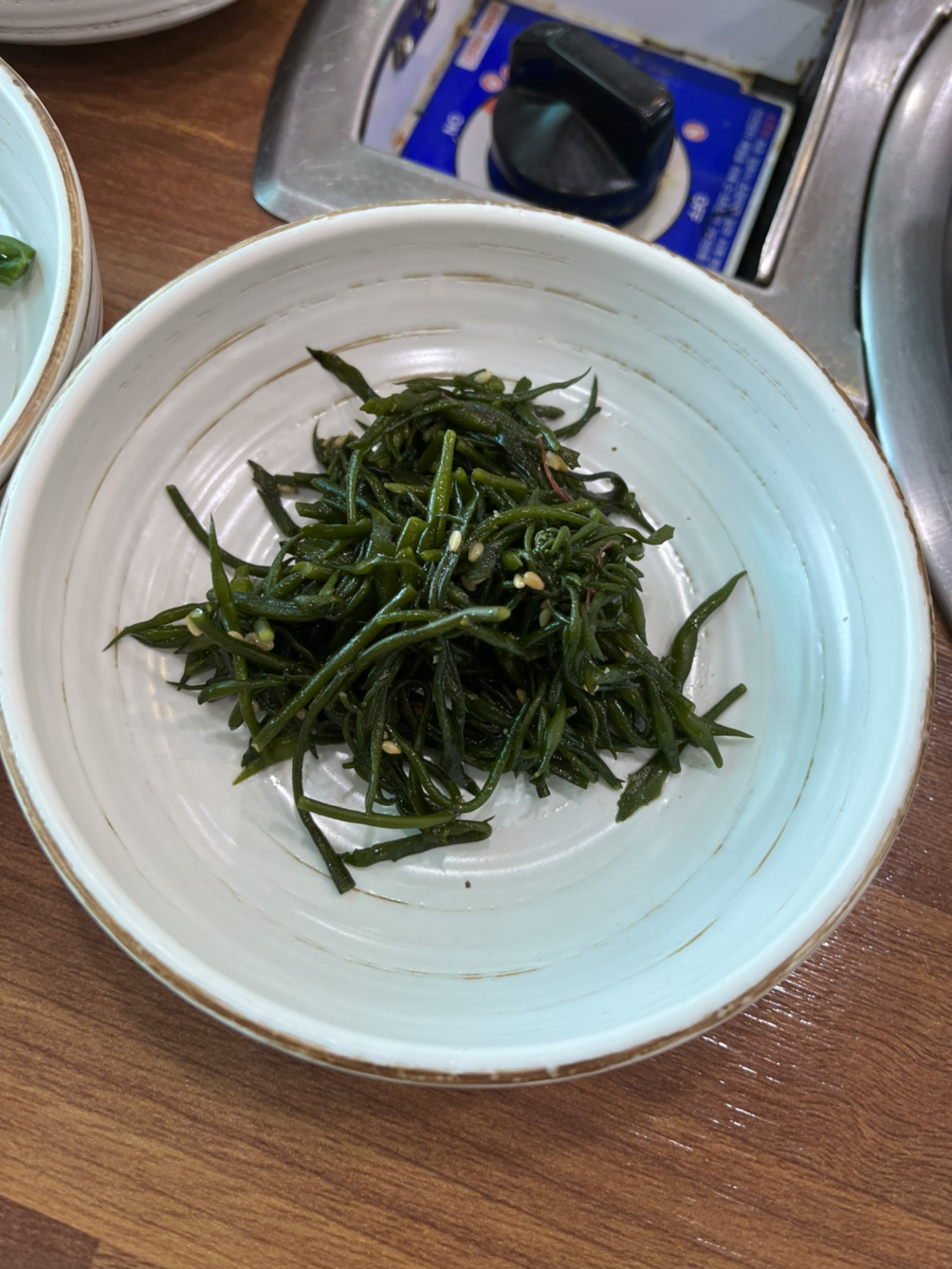 노란 간판이 있는 거제 멸치 쌈밥의 문을 열고 들어가자마자 진하고 고소한 냄새가 풍겼다. 음... 냄새부터 합격인데? 멸치찌개와 멸치 초무침, 다시마와 찐 양배추, 깻잎, 상추와 각종 밑반찬으로 상이 차려졌다. 톳 무침이 고소하고 간이 적절해서 엄마와 함께 어떤 재료를 썼을지 이야기를 나눴다. 어릴 때부터 종종 이렇게 음식에 들어간 재료를 맞추는 놀이를 하곤 했는데, 이런 시간이 나의 미각을 발달시켜준 것 같다.