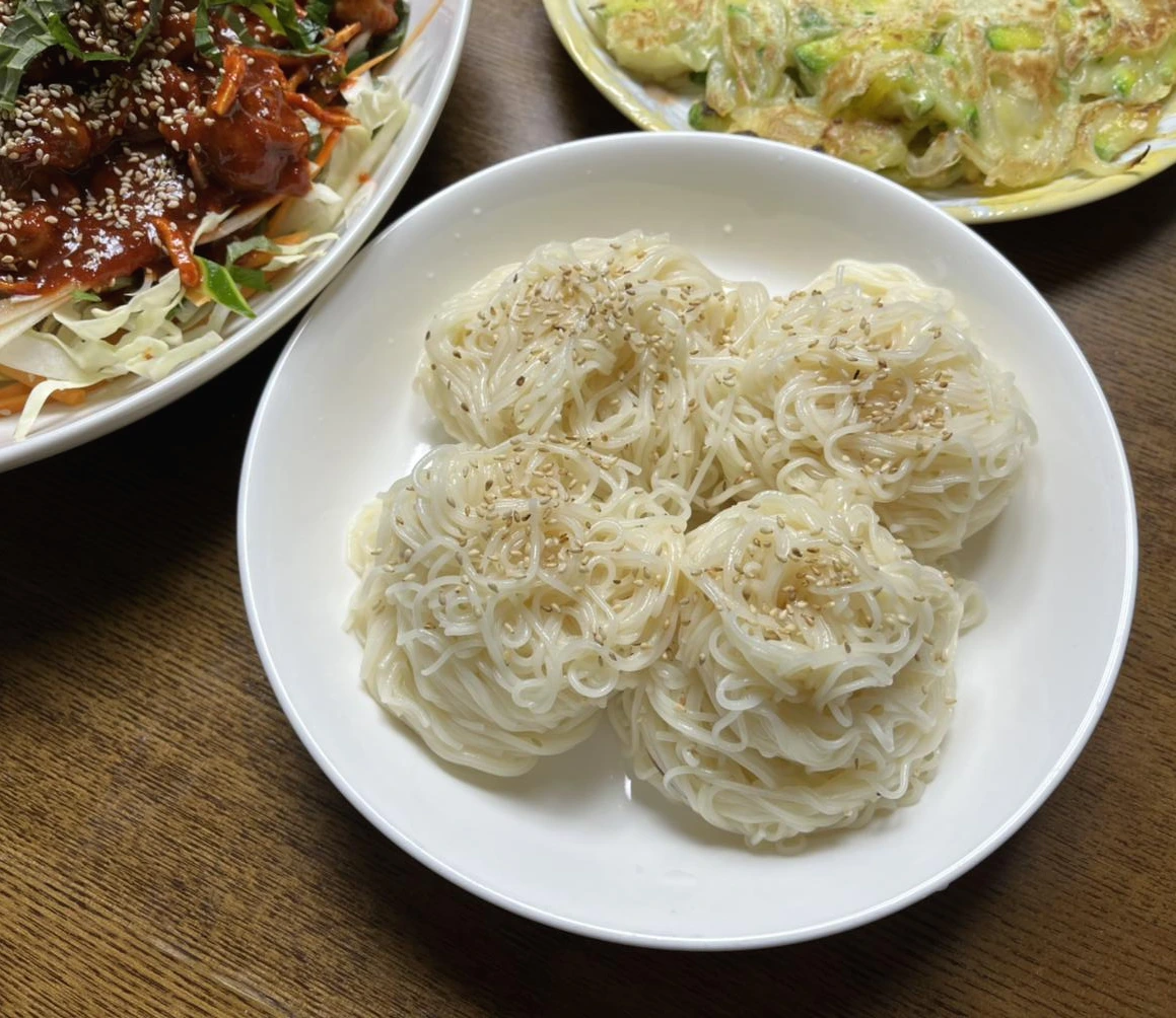 물론 소면은 불면 맛이 없기 때문에 소면을 삶을 타이밍을 잘 잡아야 합니다. 골뱅이 무침에 양념장을 붓기 전에 소면 삶을 물을 끓이고, 물이 끓으면 소면을 넣은 동시에 골뱅이를 무쳐줍니다. 소면이 끓어오르면 찬물을 3번 나눠 붓고 골뱅이 무침을 접시에 옮겨주세요. 찬물에 박박 문질러 씻어준 소면은 동그랗게 말아서 모양을 잡고 참기름과 통깨를 조금 뿌려준 뒤에 접시에 담고 바로 골뱅이 무침과 식탁에 내면 타이밍이 딱 맞아요. 멀티태스킹(Mullti-tasking)이 필요합니다.