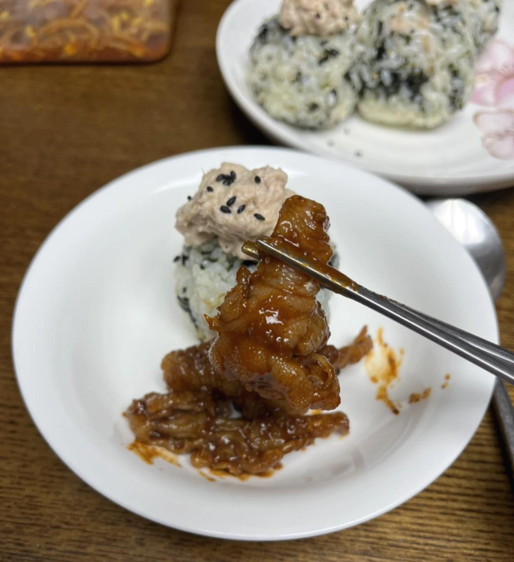 알싸하게 통마늘과 같이 먹어도 맛있고 고소한 주먹밥과 먹어도 맛있어요. 제법 매콤해서 아버지께선 땀이 주르륵 흐른다고 하는데 저에게는 딱 적당한 매운맛이었습니다. 스트레스가 확 풀리는 정도의 매운맛이랄까? 닭발 한 입에 소주 한잔을 마셔주면 소주가 달달하게 느껴지는 매운맛입니다. 으음... 바로 어제 금주를 선언했는데 사진을 보니 또 먹고 싶네요.