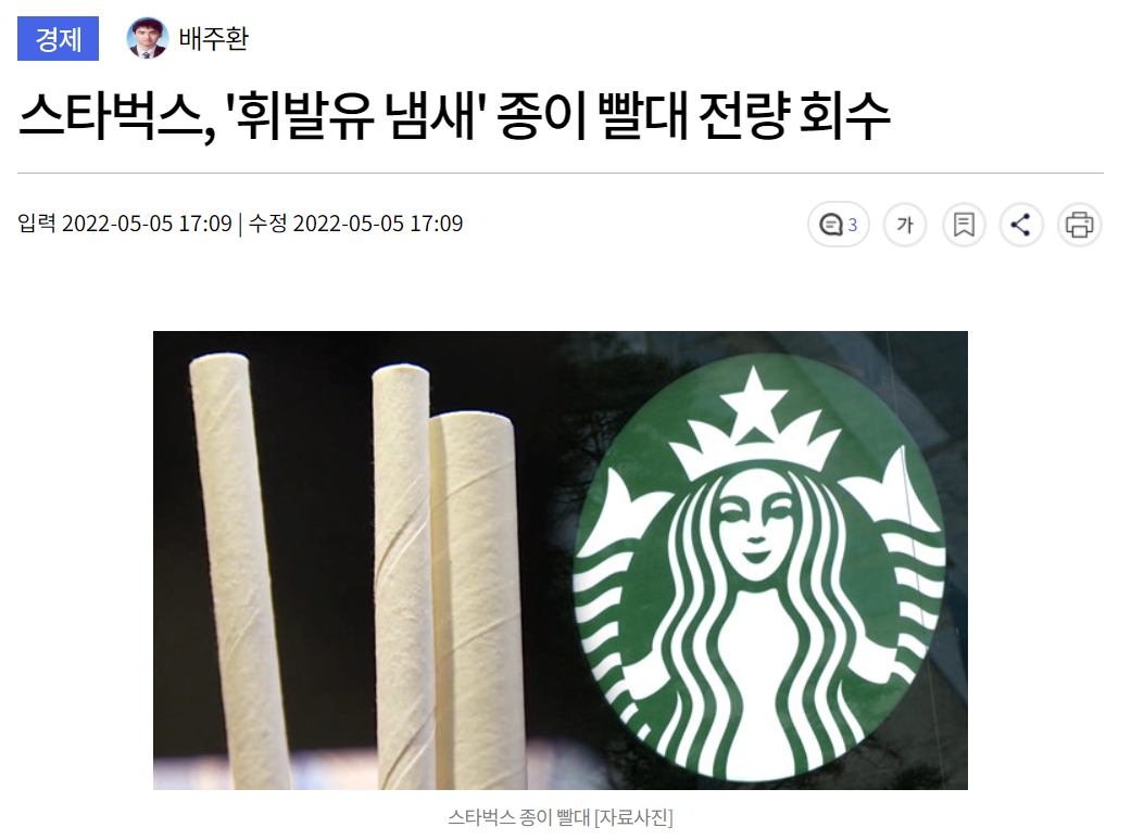 사실 2022년에 스타벅스에 크고 작은 사건들이 많았습니다. 첫째는 종이 빨대에서 휘발유 냄새가 난다는 민원에 빨대를 전량 회수한 사건입니다. 빨대 제조업체에서 코팅액 배합비율을 바꾸면서 생긴 문제였다고 해명했습니다. 두 번째는 샌드위치 품질 논란입니다. 블라인드에 치킨 클럽 샌드위치 속 부실한 속재료의 사진이 올라온 적이 있어요. 이 또한 품질 관리에 좀 더 힘쓰겠다고 해명하고 넘어갔습니다.