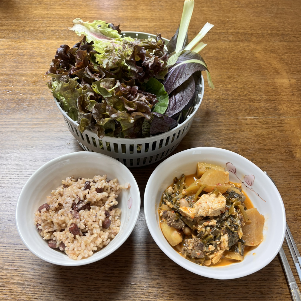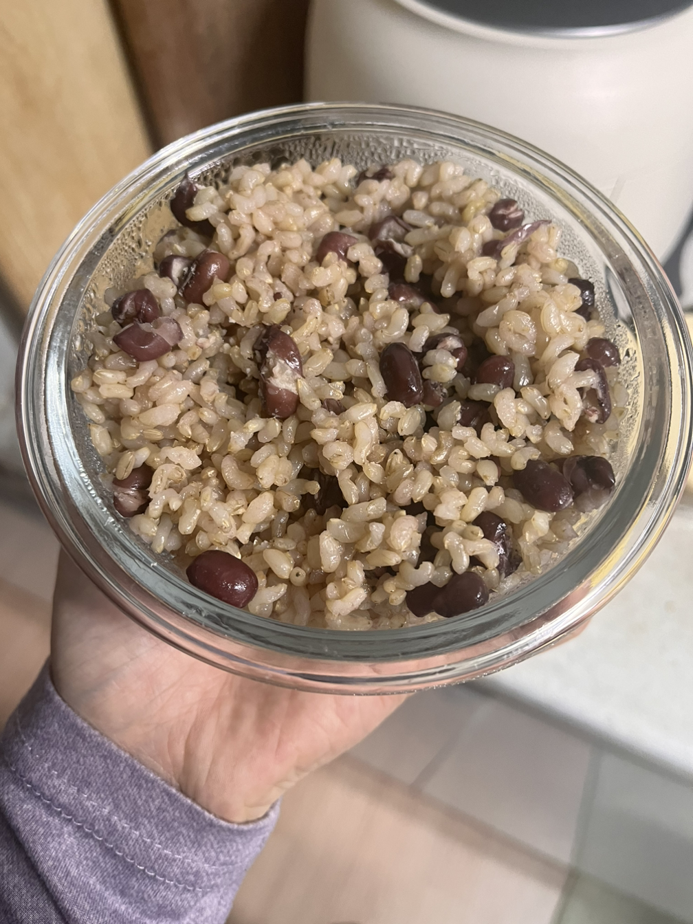 저는 팥으로 팥 현미밥과 저탄수 팥죽을 만들어 먹었어요. 레시피는 간단하지만 미리 준비해야 할 것이 있어요. 팥을 요리할 때는 이틀 정도 물에 불리는 것이 좋습니다. 깨끗히 씻으면서 물에 떠오르는 팥들은 골라내 버리고요. 찬물에 팥을 담가서 한번 끓인 후에 물을 버려주세요. 팥에서 나오는 불순물이나 떫은맛을 제거하는 과정입니다. 이때 팥 한컵은 미리 불려놓은 현미에 섞어 밥을 지어줍니다. 팥을 넣어서 밥을 하면 은은한 단맛과 향이 좋아요. 팥밥에 청국장을 끓여서 함께 먹었습니다. 두부를 듬뿍 넣은 청국장은 단백질을 보충해주고 장 건강에도 도움이 되겠죠.