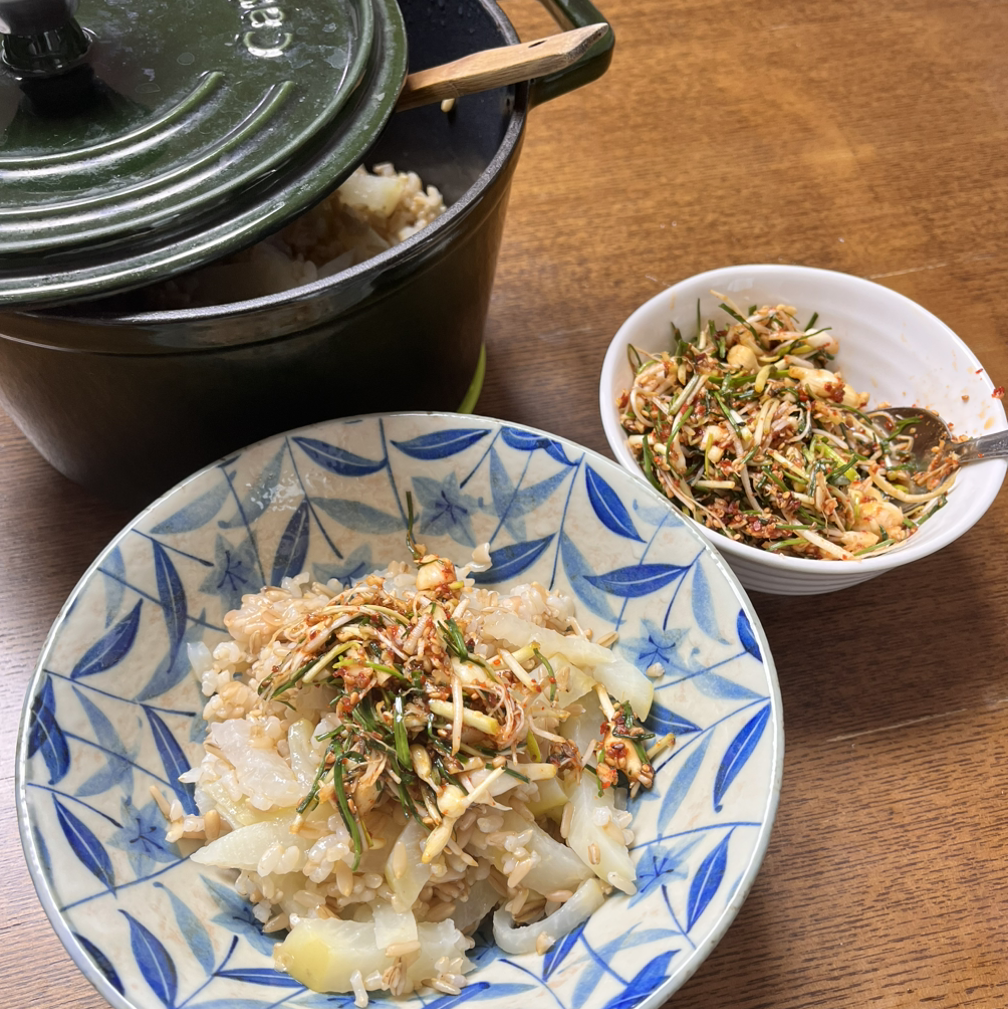 무는 소화를 돕는다고 하죠. 뜨끈한 무밥에 향긋한 달래장을 넣어 슥슥 비비고 한 입 먹으니까 입안이 가득 향긋해집니다. 통깨와 참기름 듬뿍 넣은 달래장도 너무 맛있어요. 물엿이나 설탕은 넣지 않았지만 무가 달고 담백해서 충분히 맛있습니다. 흰쌀로 무밥을 해서 꼭꼭 오래 씹으면 더 달게 느껴질 거예요.
