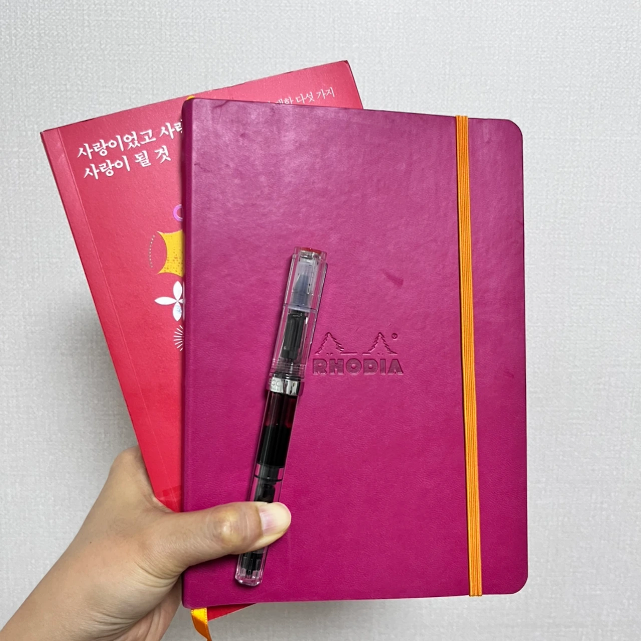몰스킨은 종이가 얇아서 만년필로 쓰면 잉크가 뒷면에 비치는 게 참 싫어요. 시험삼아 로디아 노트를 산 후에는 로디아에 정착했습니다. 로디아 노트 사이즈는 반드시 A5, 표지는 광택이 없어야 합니다. 속지는 줄이 있어야 하고 모눈이나 백지는 구매하지 않아요. 되도록이면 붉은색을 선택하는 것도 나름의 고집이겠네요. 어딜 가든 가방 안에 읽을 책, 노트, 만년필을 챙깁니다. 이 아날로그 감성을 놓지 못해서 가방이 점점 무거워지는 거겠죠?