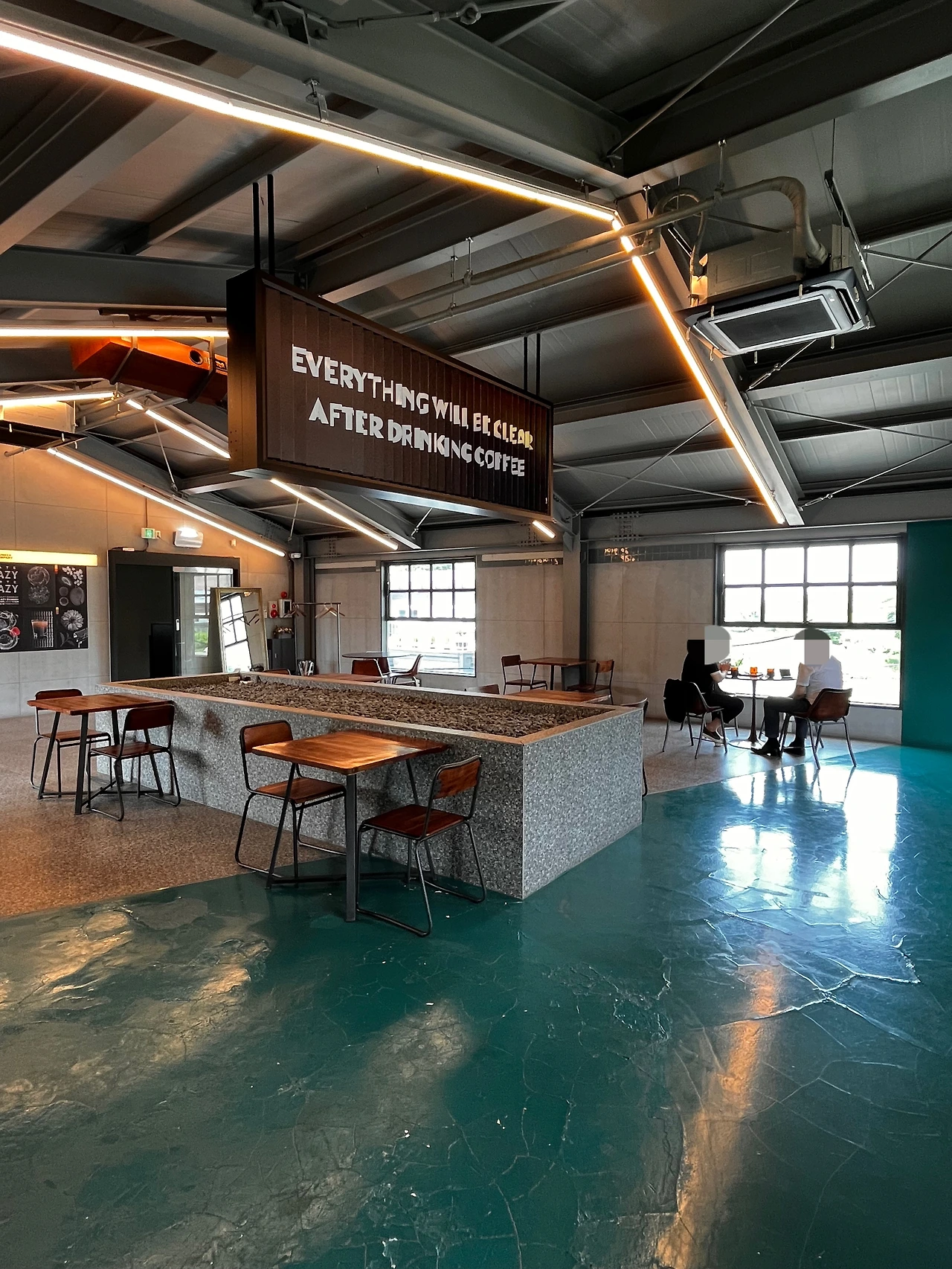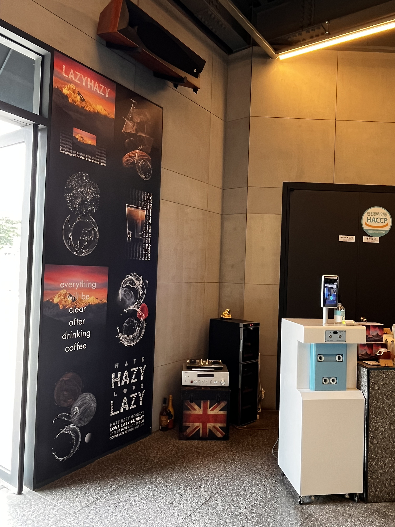 인더스트리얼 감성의 공간에 힙한 음악, 곳곳에 자부심이 엿보이는 상패나 브랜드 소개가 보입니다. 개인적으로 이런 인더스트리얼 콘셉트의 인테리어를 좋아하지 않지만, 실제 공장이니 개연성이 있어서 설득되었다고 할까요?