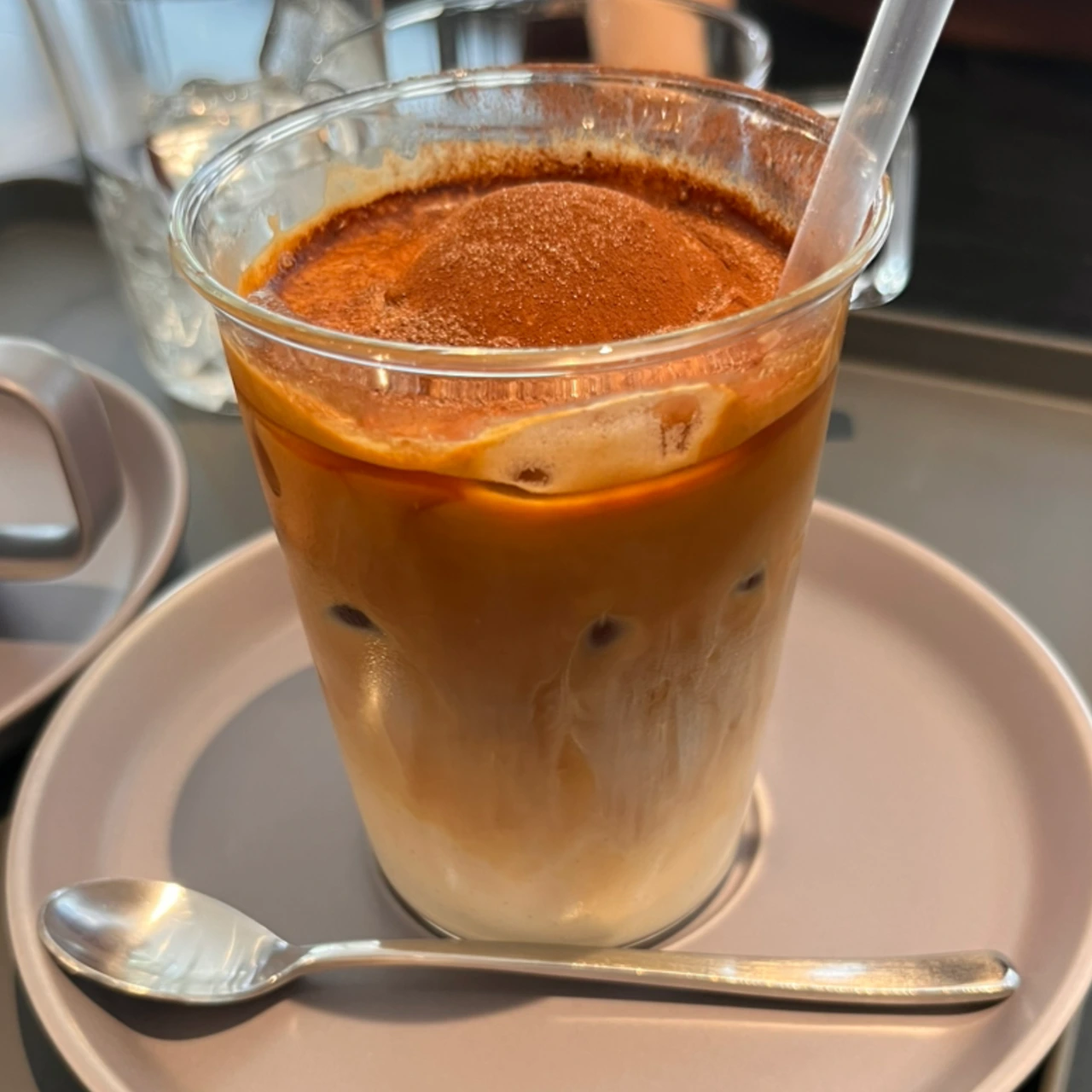 -카페 콘 엘라도는 아이스크림을 넣은 아이스라떼에 코코아 파우더를 듬뿍 올린 메뉴입니다. 엘라도(Helado)는 스페인 어로 얼린 음식이라는 뜻이라네요.