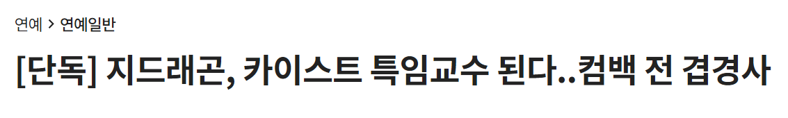 [단독] 지드래곤, 카이스트 특임교수 된다..컴백 전 겹경사