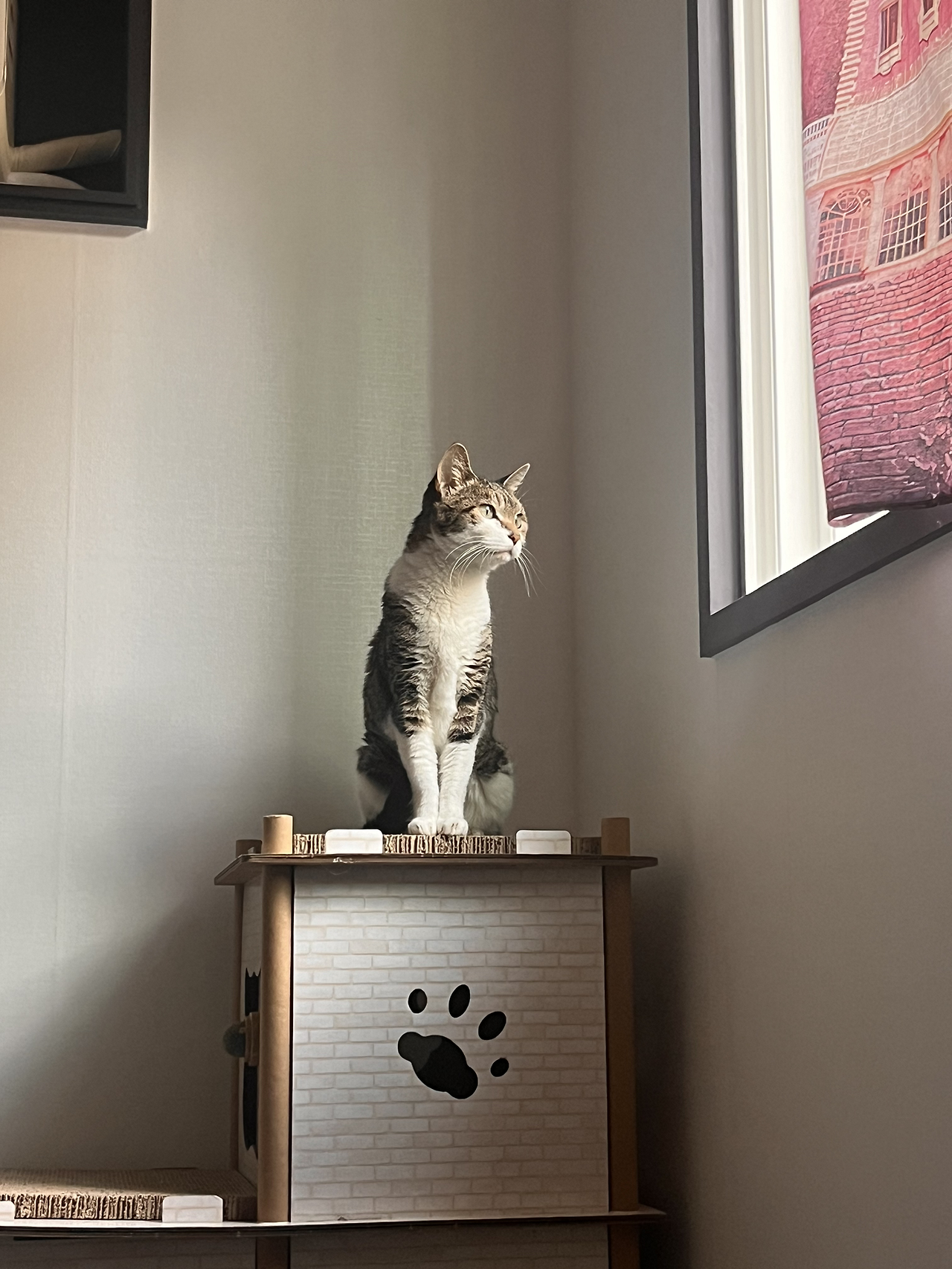 사료를 조금 먹고 오래간만에 스크래쳐를 긁었다.