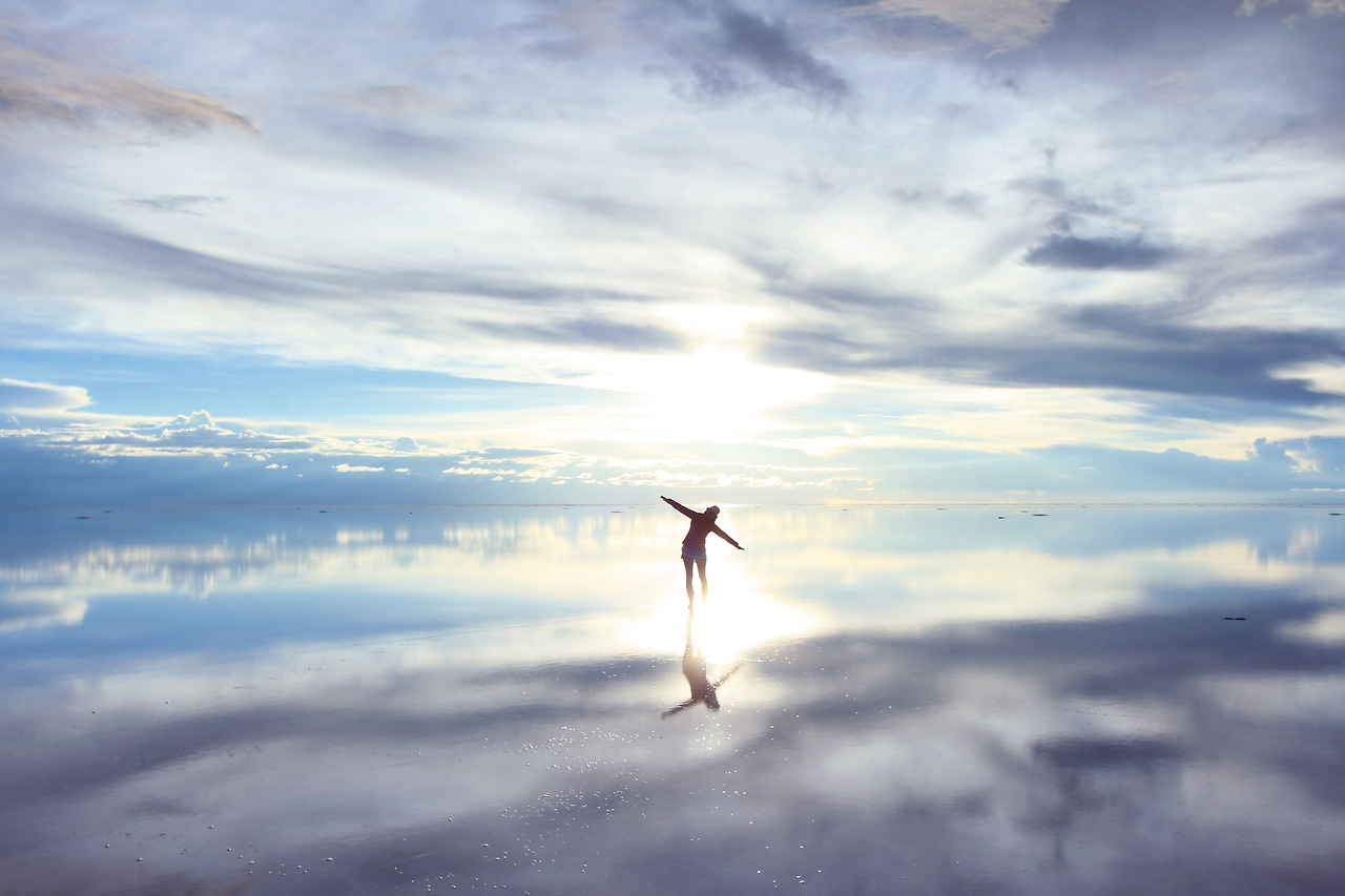 거울처럼 하늘을 비춰내는 하얀 우유니는 그날의 구름, 공기의 온도, 바람의 방향, 해와 달과 별의 높이에 따라 모든 순간이 새롭다. 내가 사랑하는 자연의 모든 것들이 한 자리에 모여있다. 발을 디디는 순간, 그 속으로 빨려 들어가는 기분. 내 발걸음에 흔들리는 물결만큼이나 심장이 떨린다. 땅을 딛고 서서도 구름 위에 서 있는 듯한 착각이 인다. 눈이 부셔서 바라볼 수가 없다.