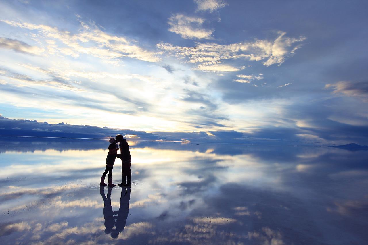 물이 가득 찬 우유니가 만들어내는 일몰 풍경. 마치 이 세상을 반으로 접어 물감을 찍어낸 데칼코마니 같다. 엄청난 자연을 앞에 두고 사진으로나 글로나 그 감동을 표현해내지 못하는 나 자신이, 비루한 감성이 한탄스럽다. 언젠가는 그림을 배워서 마음에 담은 우유니를 나만의 느낌을 색으로 담아내고 싶다는 생각을 한다. 아무것도 할 수 없는 지금은, 그저 그림 속으로 걸어 들어가 나 또한 그림이 되어야겠다.