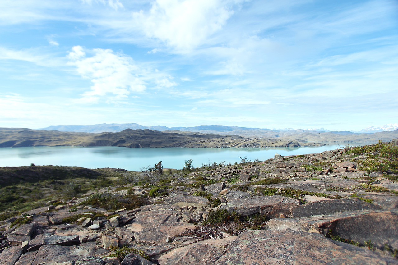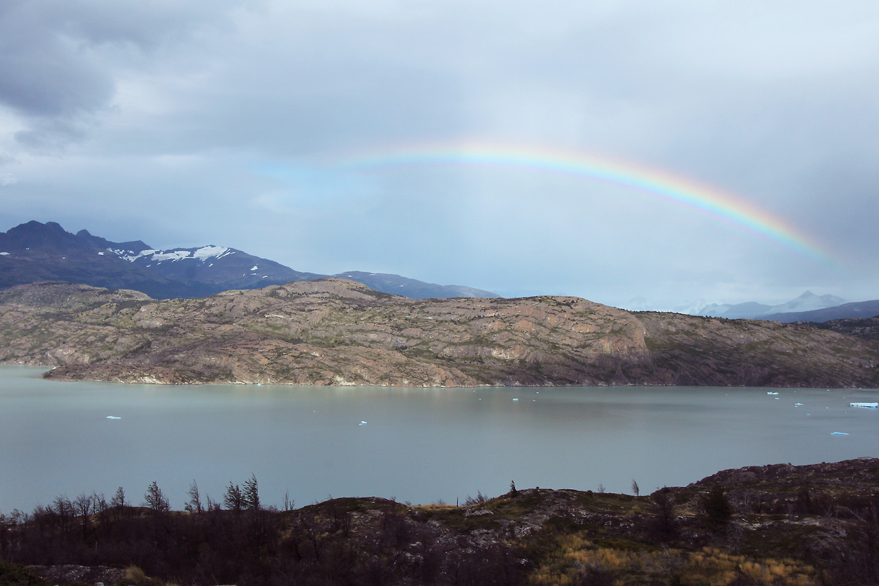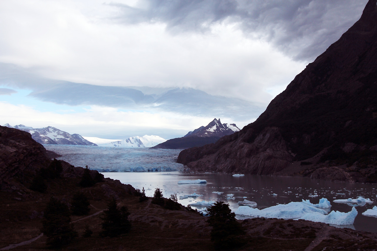얼마쯤 걸었을까. 구름이 두텁게 내려앉은 하늘에 서서히 잔잔한 파도가 일렁이고 캄캄한 호수 위에 동동 떠 있는 빙하 조각들이 하나 둘 반짝이기 시작한다. 얼음 조각들을 따라 시선을 옮기니 저 멀리 호수 끝, 오늘의 목적지 그레이 빙하도 고개를 내밀고 있다.