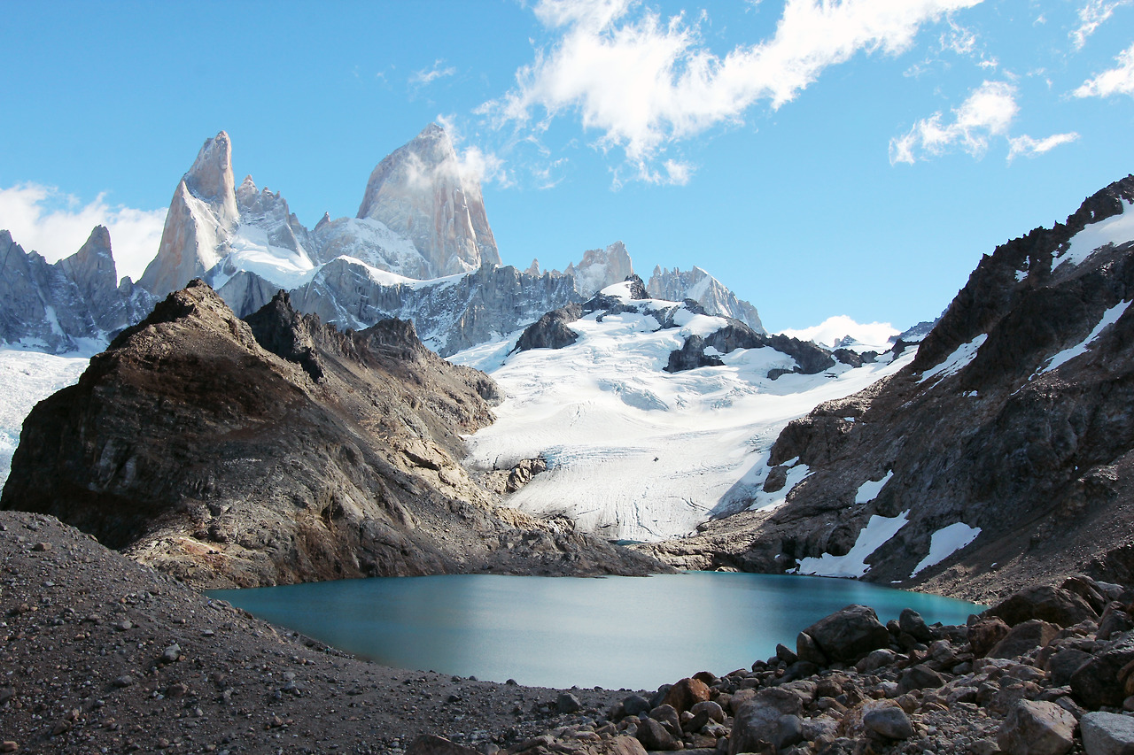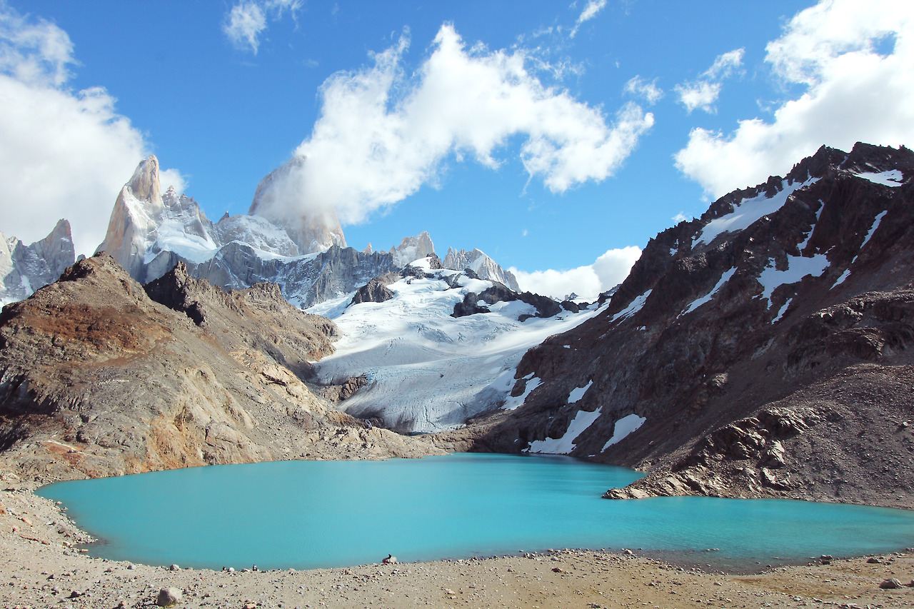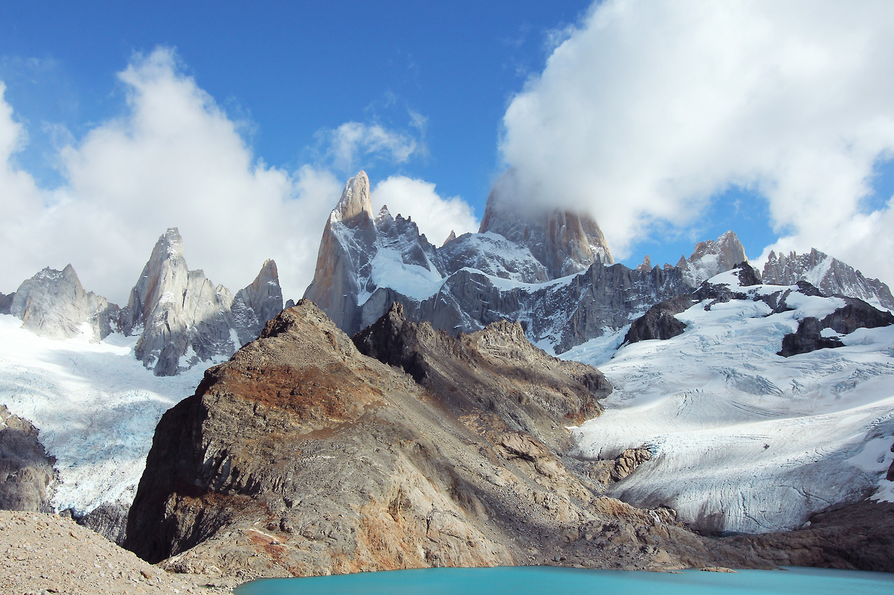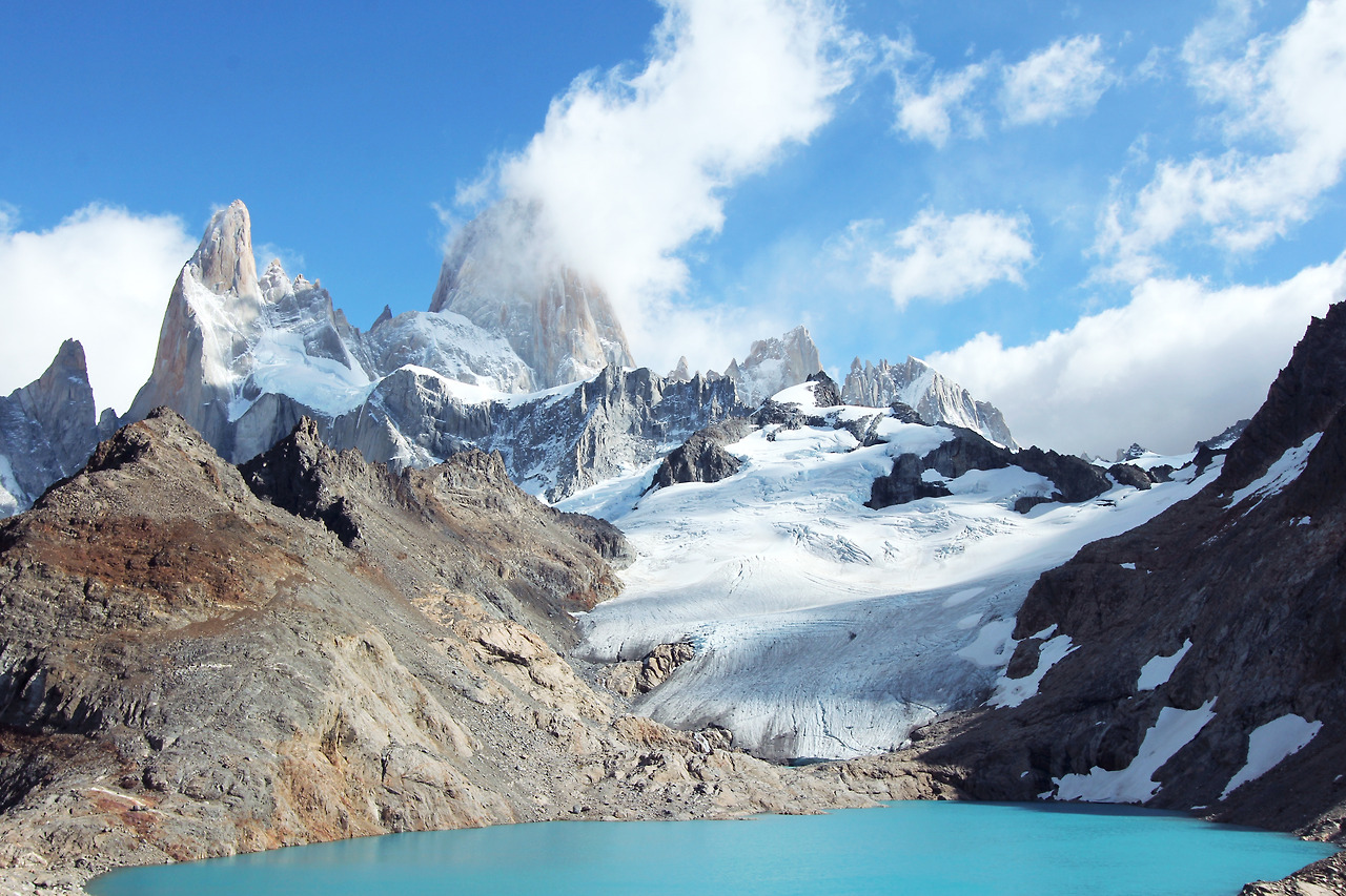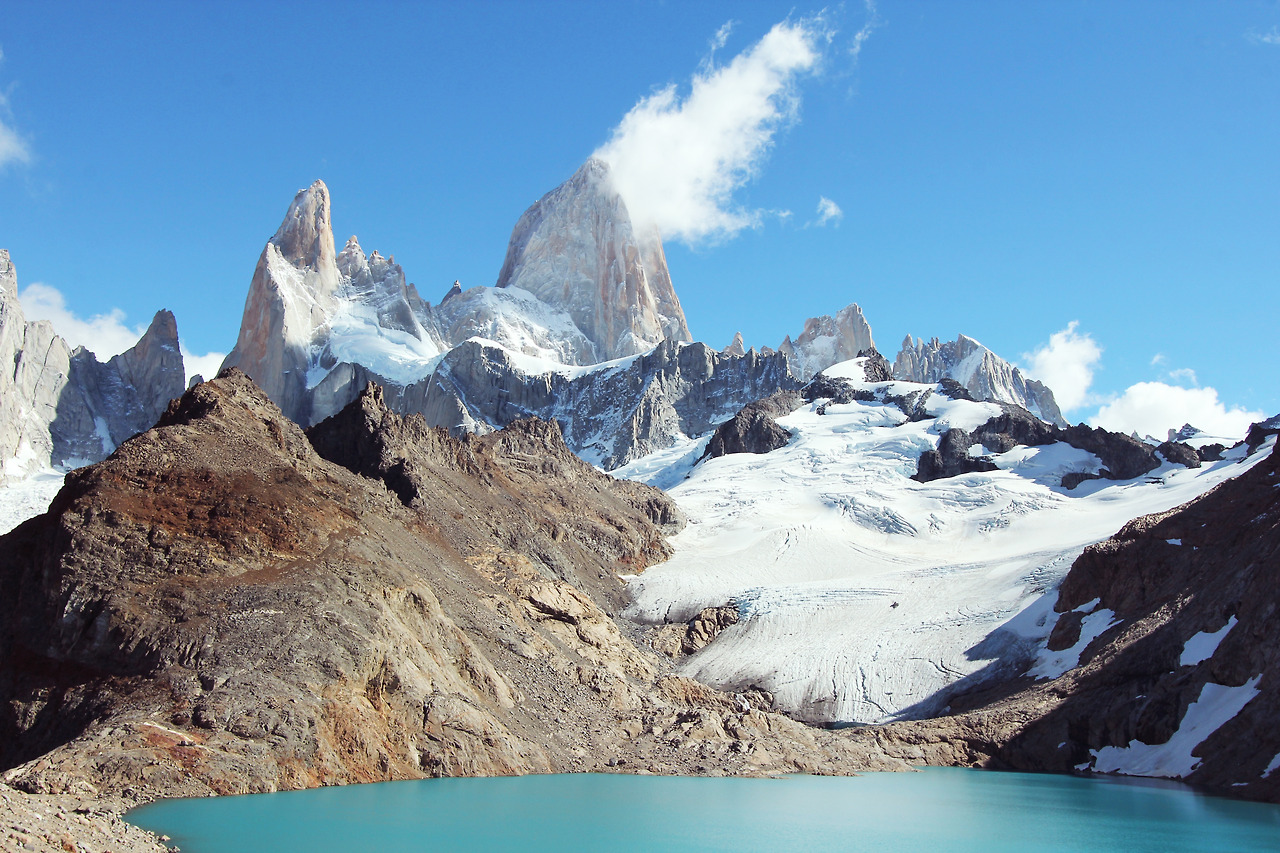 아름다운 산과 호수와 빙하와 구름과 빛과 그림자. 몇 배속 촬영 영상처럼 구름이 자석에 이끌리듯 봉우리 주변을 맴돈다. 나 또한 빨려 들어갈 것 같은 엄청난 흡입력. 우주의 다른 공간에 와있는 듯하다. 한시도 눈을 떼고 싶지 않은 피츠로이를 눈에 꾹꾹 담는다.