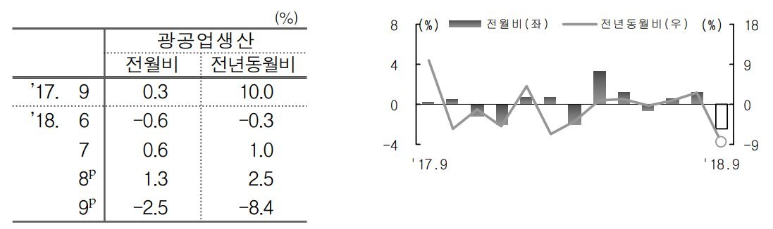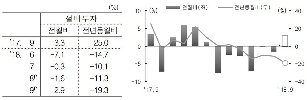 하지만, 그렇다고 현재의 한국경제는 결코 좋은 상황은 아니다. 투자가 줄면서 고용지표에 이어 생산지표도 망가지고 있는 중이다. 최근, 산업생산은 전년비 8.4%, 서비스 생산은 1.4%, 설비투자는 19.3%, 건설기성은 16.6%, 건설수주는 6.6% 각각 감소했다. 소매판매가 0.5% 늘었고, 설비가동률은 1.8%p 하락한 73.9%였다. 투자의 감소가 생산의 감소를 유발하고 있으며, 반도체 섹터만 괜찮은 상황이다. 흐름으로는 분명 가라앉고 있다고 생각한다.