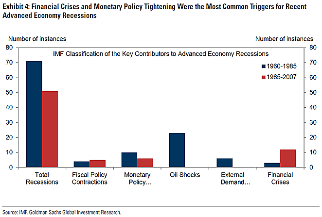 미국을 벗어난 여타 선진국을 대상으로 122번의 Recession 데이터를 IMF에서 분석한 결과, 주요 원인으로는 재정정책의 쇼크, 통화정책의 쇼크, 오일 쇼크, 외부 수요, 금융위기로 나타났다.