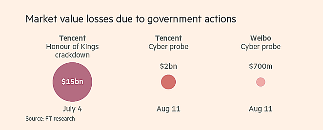 Tencent도 예외없이 상처입었다. 중국 당국의 중독성에 대한 비난 이후 7/4일 그들의 최고 히트 게임인 Honour of Kings에 대한 어린이들의 접속시간 제한조치가 취해졌고 이에 주식가치는 151억 달러 가량 증발해버렸다. Tencent는 자신들의 공식 소셜 미디어 계정을 통해 이번 조치가 "역대 최악의 반중독 조치"라고 평했다.