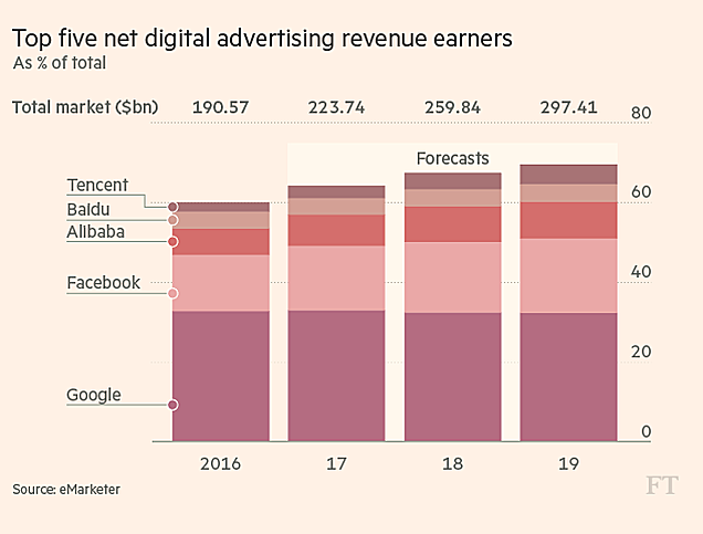 광고 수익이야 말로 IT산업의 수익을 이끄는 요소지만 중국에서만은 예외이다. Tencent의 Weixin과 WeChat 계정은 월 9억 6천 3백명의 사용자를 보유하고 있으며 이는 Facebook의 20억 명의 유저의 절반에 육박하는 수치이다. 하지만 그들의 올해 디지털 광고 수익 예상은 70억달러에도 미치지 못해, Facebook의 360억 달러와 대조된다.