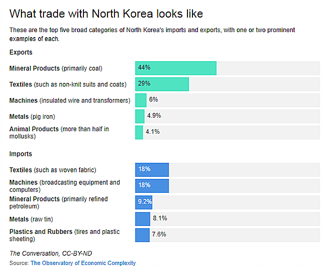 북한의 달러화에의 접근을 막으려는 목적으로 설정한 석탄 수출 한도는 북한의 수출로 인한 수익의 1/3이상 줄어들게 했어야 했다. 북한 석탄의 99% 를 사들이고 있는 중국은 2월 북한으로부터의 모든 수입을 중단하겠다고 밝혔다. 하지만 북한 선적들은 중국의 도크에 지속적으로 입항해왔다. 또한 북한은 다른 수입원을 가지고 있다. 북한 정권은 외국 대리인을 통해 마약, 무기, 모조품 등을 팔아왔다. 김정은 정권은 강제로 노동력을 수출함으로써 10억 달러를 벌어들이고 있다.