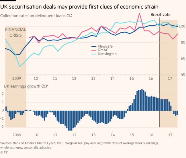 수만 명의 개인 차주가 포함된 증권화 거래는 영국 전역의 대출자의 행동 패턴에 대해 보다 상세한 인사이트를 제공한다. 애널리스트들은 브렉시트의 부정적인 영향이 이 증권화 거래에서 처음으로 나타날 것으로 생각한다. 왜냐하면, 때때로 차입자들의 낮은 소득과 신용의 약화가 반복된 역사를 가지고 있기 때문이다.