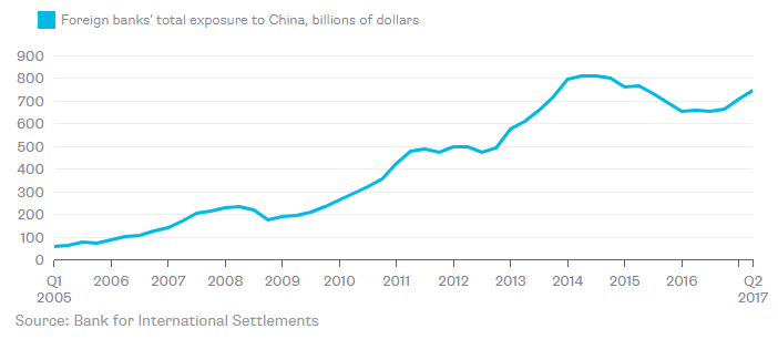 그간 중국은 금융위기를 앉아서 기다리는 것이 아니라 전세계를 설득하기 위해 노력을 해왔다. 최근 자료들을 통해 판단해 보자면, 해외은행들은 중국에 대한 대출을 계속해서 실행하고 있다. BIS(국제결제은행)에 따르면 외국계은행의 2017년 6월 현재 중국에 대한 exposure는 연초 6,590억 달러에서 7,500억 달러로 증가했다. 이러한 분위기는 2년 전과 비교해 크게 대조적인데, 당시 과도한 채무에 대한 우려와 성장 둔화로 채무 불이행이 야기될 것이라는 우려로 대출 기관이 회수에 나섰던 바 있다.