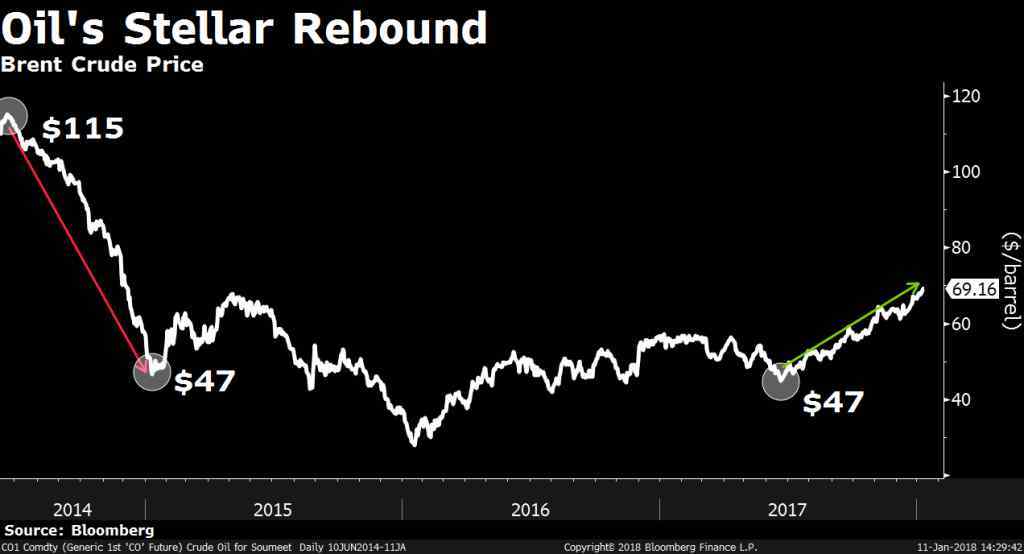 2018년 브렌트유 가격은 배럴당 평균 $65로 예상되며 이는 작년 서베이의 $60~$65 전망보다 약간 높을 뿐이다. 2019년의 브렌트유 가격은 2017년 서베이에서 $65에서 $65~$70로 상승할 것으로 예상하고 있다.