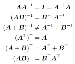 이런 각 행렬이 서로의 transpose입니다. 역행렬과 전치행렬에 대해서 다음과 같은 성질이 성립합니다.