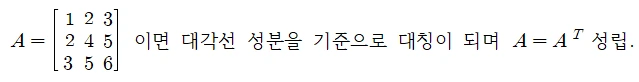 예를 들면 아래와 같습니다. 아래의 행렬 A는 symmetric입니다.