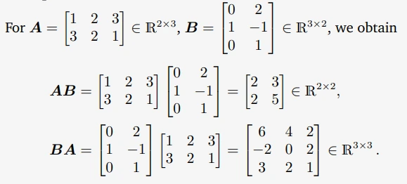 과 같이 구할 수 있으며, 일반적으로 AB와 BA는 같지 않습니다. 교환법칙이 성립하지 않죠.