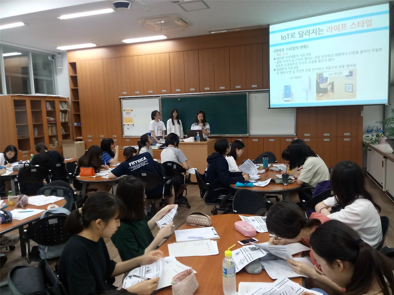 주제들 중에서 사실 고등학교 1,2학년의 학생들이 읽기엔 좀 어려운 부분도 많았지만 학생들은 어떻게든 발표 준비를 해왔다. 학생들이 15분간 버벅대며 발표를 하면 10분간 보충 설명을 해주었고, 그렇게 전체적으로 4차 산업혁명을 한 번 훑으면서 큰 틀을 잡아나갔다. 마침 이 수업을 하는 기간에 JTBC ‘차이나는 클라스’에서 정재승 교수의 4차 산업혁명 특강이 방영되었는데 방송 시청을 과제로 하면서 수업을 진행했다.