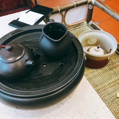 알고 보니 위와 같이 차를 데우기 위한 작은 불이 있다. 기자님이 만두는 차랑 같이 먹어야 한다고 하셨다. 먼저 속을 편하게 하기 위한 죽을 먹었는데 생각보다 맛있다.