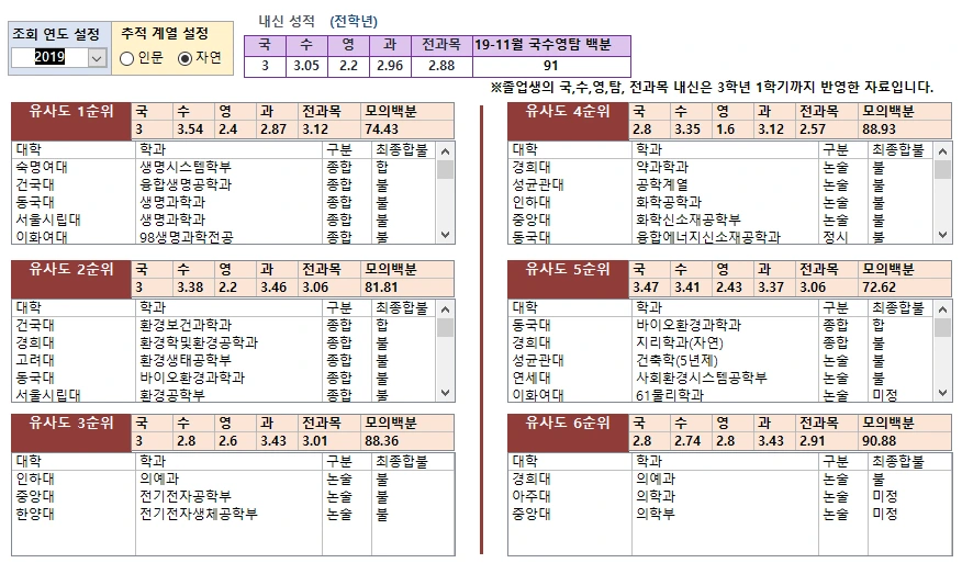 “선생님! 저랑 비슷한 성적의 언니들은 어느 대학에 지원했었어요?”