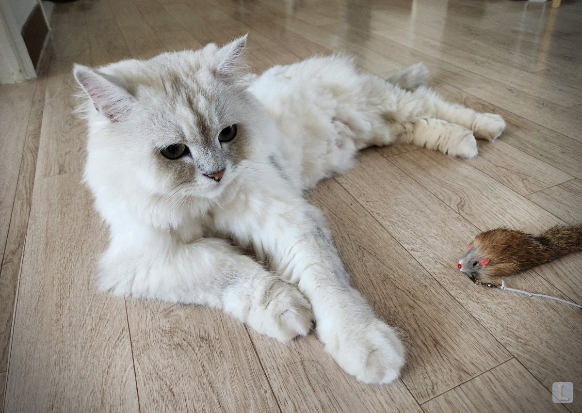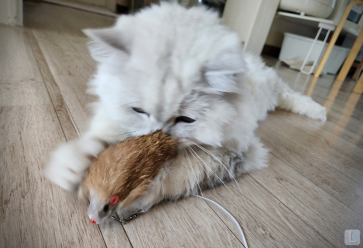 처음엔 낯설었던 건지 새로 산 큰 쥐돌이 인형에 별로 반응이 없었다.