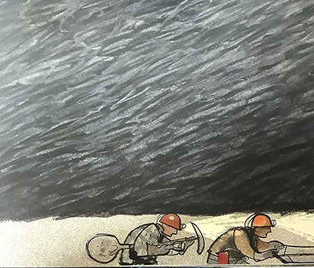 갱도에서 일하는 광부 아버지들. 아버지들의 머리 위로 내려앉은 어둠이 무겁다. 때로 이 어둠이 쏟아져내려 광부들인 황급히 몸을 피해야 하는 상황이 생긴다