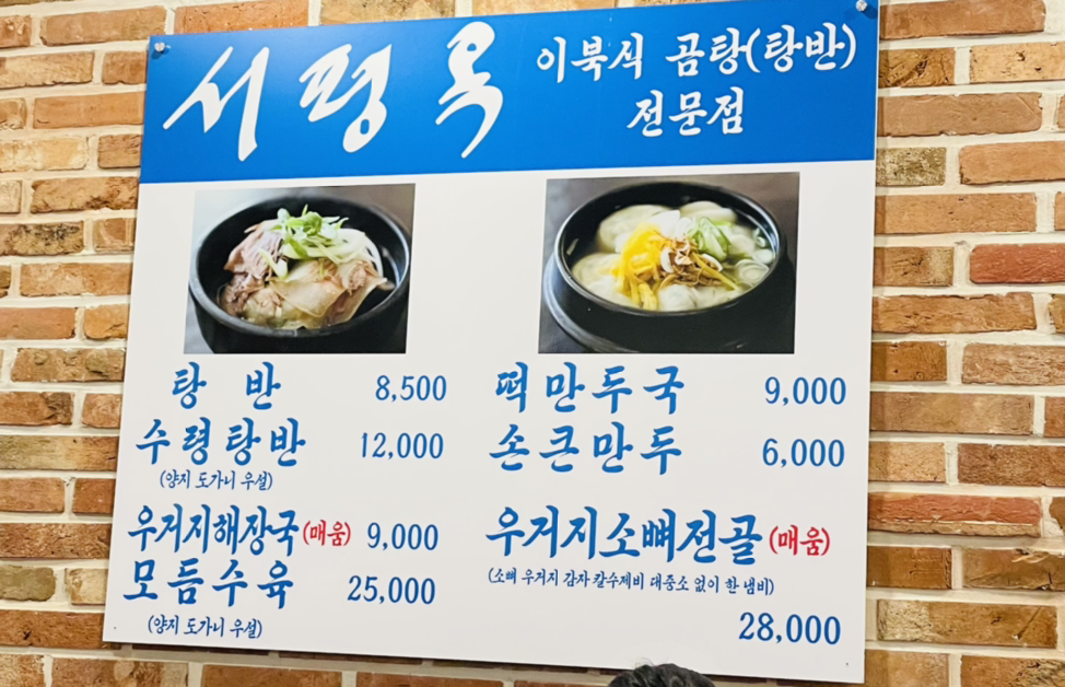 서평옥 메뉴는 탕반과 만두국이 대표 메뉴입니다. 특탕반은 일반보다 고기가 더 들어간 메뉴입니다.