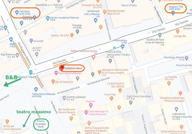 숙소 주변에 보다폰vodafone 대리점과 두 개의 팀tim 대리점이 있다. 어떤 여행 블로그를 보고 정한 곳이 있었지만 현지인은 어디를 추천할까 궁금하다. 다비드에게 물었더니 좋은지는 모르겠지만 자기 것 산 곳이라며 알려주는데, via cavour에 있는 tim 대리점이다. 가려던 곳이었다. ^^