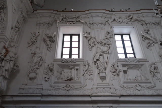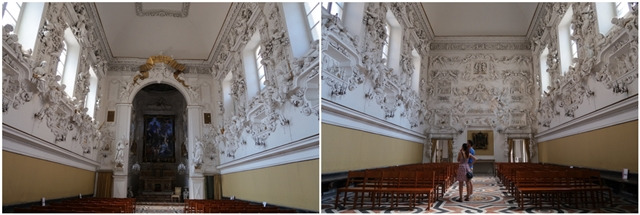 오라토리오 안으로 들어서니 사방 새하얀 벽 위에 새하얀 스투코 조각이 빽빽하게 붙어있는 공간이 눈앞에 펼쳐진다. 짜잔~ 소리가 들려야 할 것 같다.