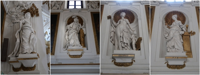 쟈꼬모 세르뽀타giacomo serpotta(1659-1732)는 바로크 후기부터 로코코 시대에 시칠리아에서 활약한 스투코 조각가라고 한다. 당시 사조에 맞는 화려하고 극적이고 생동감 넘치는 분위기를 그의 수투코 조각들이 잘 만들어낸 것 같다. 회반죽으로 찍어낸 아기, 소년, 소녀, 귀부인의 모습으로 당시 사조에 맞게 기독교를 형상화했다고 할까...