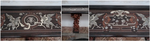 제단을 등지고 완쪽에는 고통의 신비를, 정면에는 영광의 신비를, 오른쪽에는 환희의 신비를 표현하는 그림이 걸려있다. 세르포타가 추가한 귀부인 형상의 조각상들은 묵주 기도의 열매 또는 미덕을 의인화한 것이라고 한다.