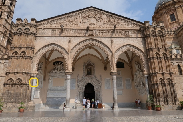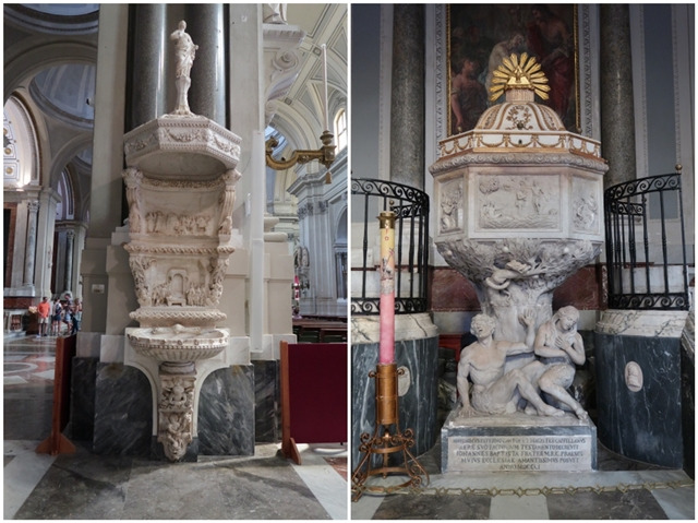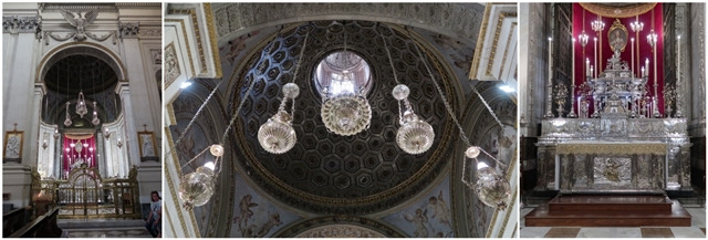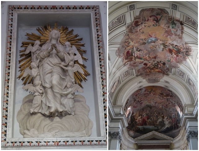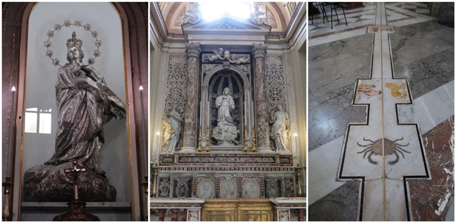 [왼쪽: 원죄 없는 잉태; 가운데: Chapel of San Francesco di Paola. 최초로 목격한 시칠리아 바로크 스타일 대리석 상감 장식(marble intarsia 또는 inlay); 오른쪽: meridian line. Giuseppe piazzi라는 유명한 천문학자가 만든 것이라고 함.]