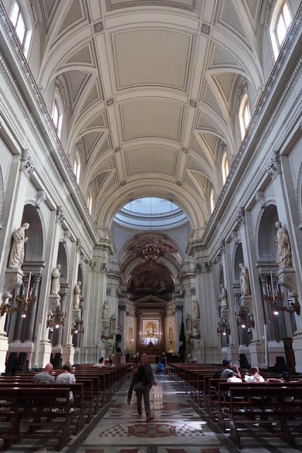 성당 내부의 첫인상은 약간 실망이라고 해야 할 것 같다. 외관에 깃든 세월도 이질적 요소들의 묘한 조화도 느껴지지 않는다. 무향, 무취의 계산적 바로크 장식 교회 같다. 감동의 기회를 주지 않는다. 18세기에 복원작업을 하면서 장식을 많이 없앴고, 돔을 추가하느라 대대적인 변화가 불가피했단다.