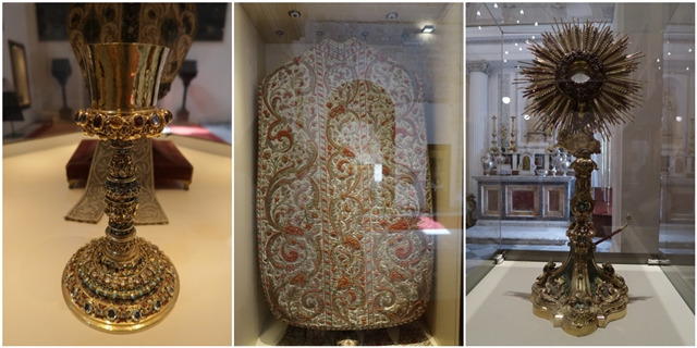 테라스에서 내려와 내부를 둘러보았다. 여러 번 대대적인 보수가 있었다지만 그래도 싹 다 갈아엎지는 못했다. 돌계단, 돌바닥, 성물 보관소 입구 등 보물 같은 구석들이 남아있다. 노르만 왕조의 묘실 말고 지하 묘지에는 중세 거물들의 무덤이 있다. 월터 대주교의 석관도 이곳에 있다. 로잘리아가 지키는 도시의 성당답게 그녀의 유해가 있는 예배당이 있고, 성당 곳곳을 시칠리아 예술가들이 작품이 장식하고 있다. 성물 보관소에는 화려한 성물들과 페데리코 2세의 부인 아라곤의 콘스탄스의 무덤에서 나온 아름다운 왕관이 있다. 성물들이 팔레르모 성당 이름값을 한다 싶을 만큼 품위 있고 화려하다.