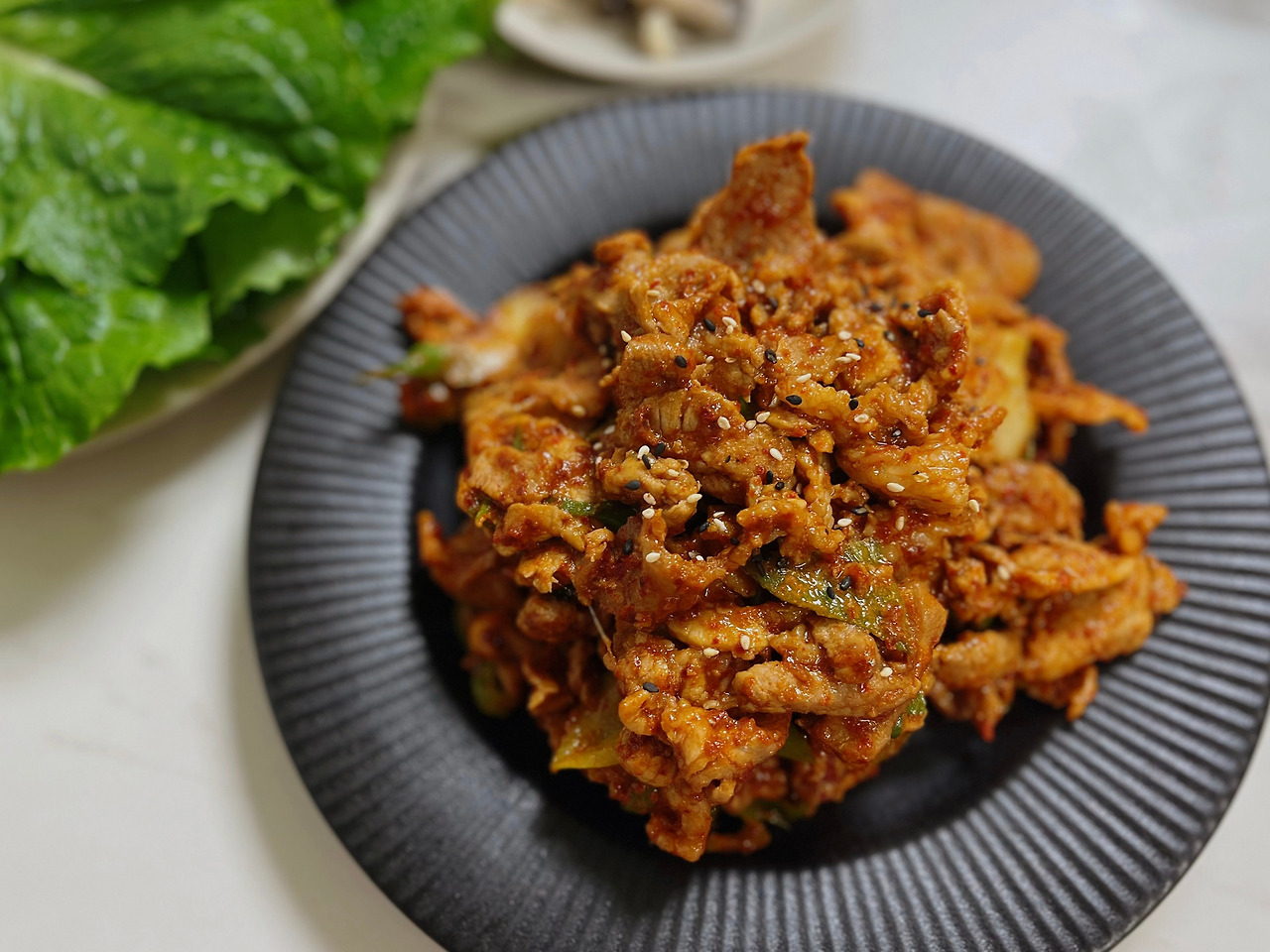 제육볶음을 가장 맛있게 먹는 방법은 쌈밥으로 먹는 것이다. 괜히 식당에 제육쌈밥이라는 메뉴가 있는 게 아니다. 깨끗하게 씻은 푸릇푸릇한 청상추에 모락모락 김이 나는 뜨거운 쌀밥 한 숟가락과 빨간 제육볶음을 듬뿍 올리면 그 색감의 조화만으로도 절로 입맛이 돈다. 입천장이 데지 않도록 두어 번 호호 불어 보고, 복주머니 모양으로 야무지게 만들어 복스럽게 한 입에 와앙. 눈을 감고 오물오물 씹으면 매콤 달달 짭짤한 양념과 도톰한 살코기, 삼겹살 특유의 녹진한 기름기의 하모니가 기가 막힌다. 삼겹살은 특히나 비계가 많기 때문에 맛이 한쪽으로 치우치는 아쉬움을 막기 위해서라도 꼭 상추와 함께 먹는 것이 좋다.