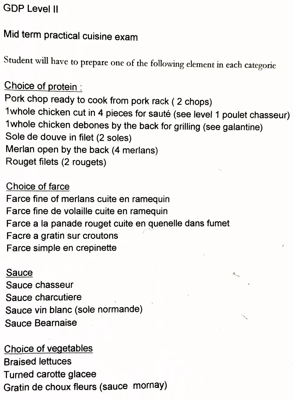 실제 요리 중급(Cuisine Intermediate) 과정의 Mid-term을 위한 목록으로, 시험 전 준비되는 재료 박스 속 내용물 역시 비밀이다.