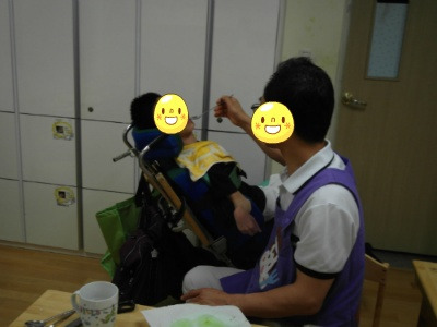 입에 넣어주는 아버지와 맛있게 먹는 아들